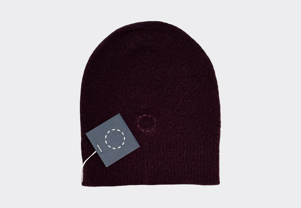 This hat can be worn in a floppy Japanese surfer way, or by rolling the hem a couple of times as a fisherman skull cap shape. It has a deep rib of super stretchy 1 x 1 rib for a perfect fit. The bouclé yarn makes the rib look the same as the jersey, and so the entire piece is really minimalist.