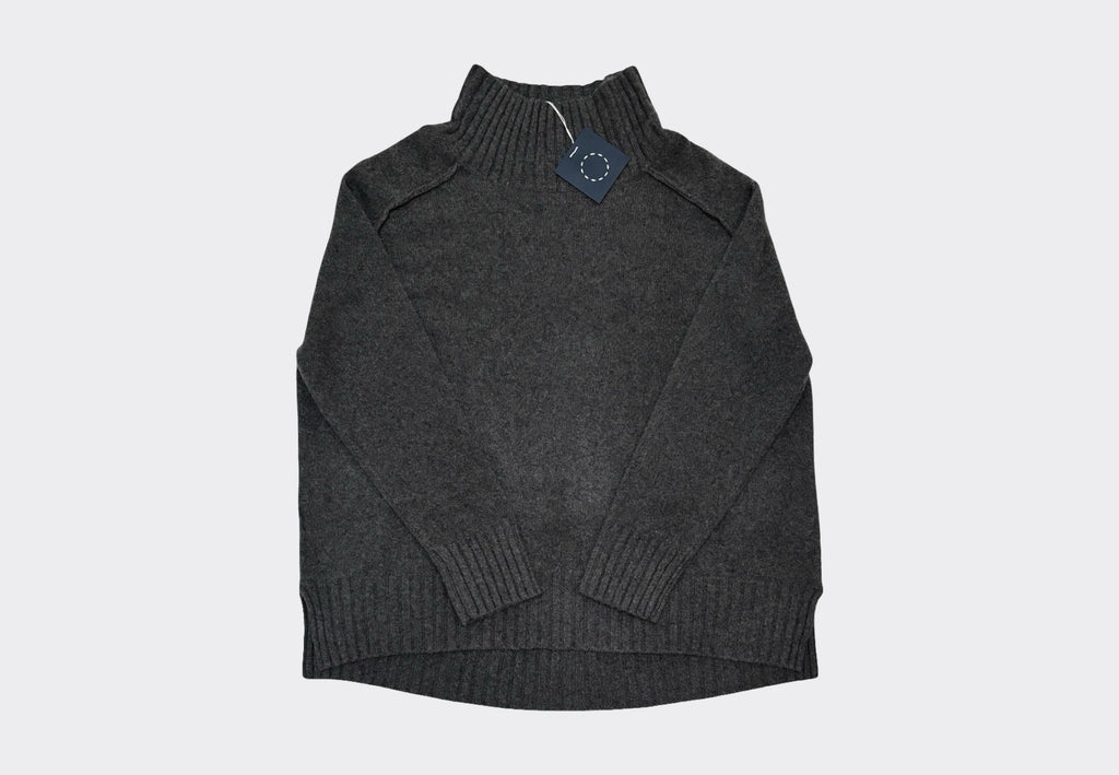 The Drama Series is a generous style with an oversize feel, emphasised by sumptuous 4-ply GRS certified recycled Italian cashmere. With a flattering curved hem at the back, wide chunky rib cuffs, and a wide rib neck that sits easily to frame the jaw and face, wearing this sweater is to be enveloped in easy flowing, weighty softness and warmth. Fully fashioned saddle shoulders are highlighted by raw finished seams to the outside to frame the shoulder and keep the look nonchalant.