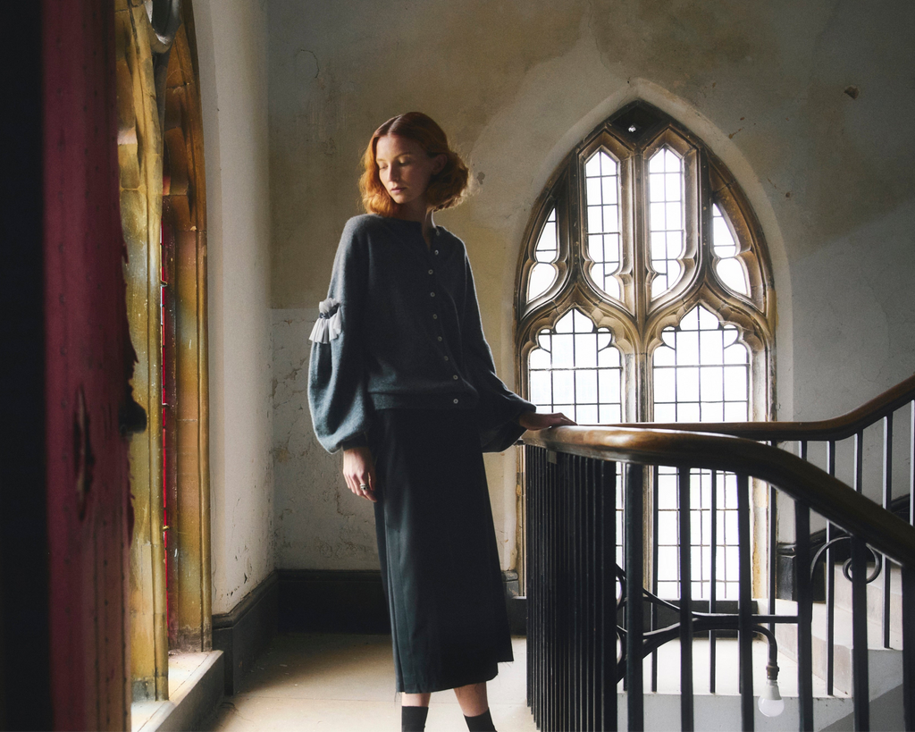 “It’s easy enough to let beautiful cashmere do the talking in a baggy sweater, it’s another thing to craft that cashmere into exciting, modern and flattering shapes which make a statement and have as important a place in the wardrobe as a big ticket dress, a trophy jacket or an extraordinary blouse. In short, they are much more than knits. There is also always a backstory, a rich tapestry of references. Lucy’s mind goes beyond fashion or craft, to history, art and landscape. There are things that make Sphere One cashmere different and special – the neatest, most flattering round-neck, shoulders that make you look neater than you are and sleeves that manage to be slim, without being tight. The fit/comfort balance is the Holy Grail. Quietly and cerebrally…she ploughs her own original furrow and always has.”